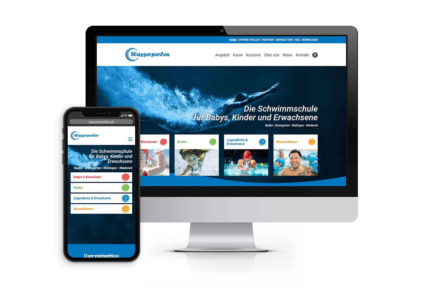 Durch die Responsivität können jetzt Schwimmkurse bei der Schwimmschule Wasserperlen von überall her gebucht werden.