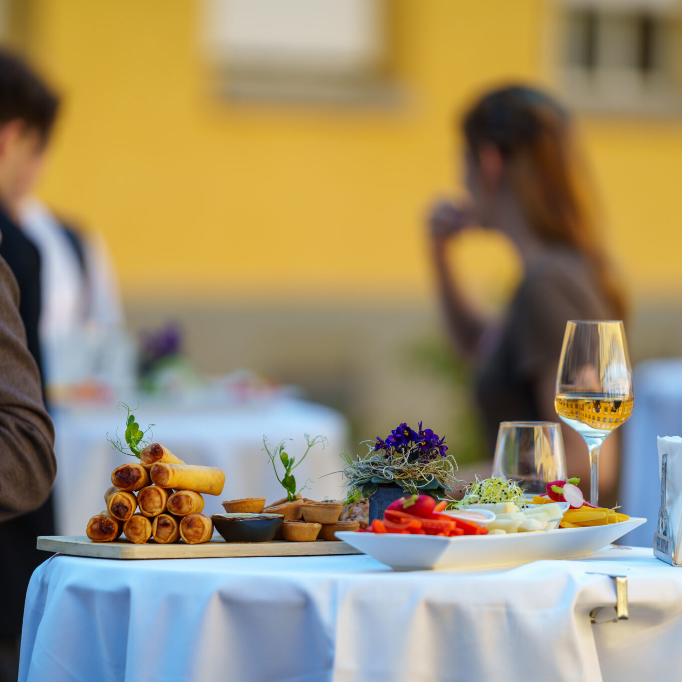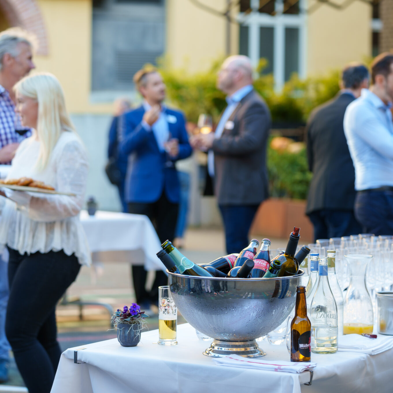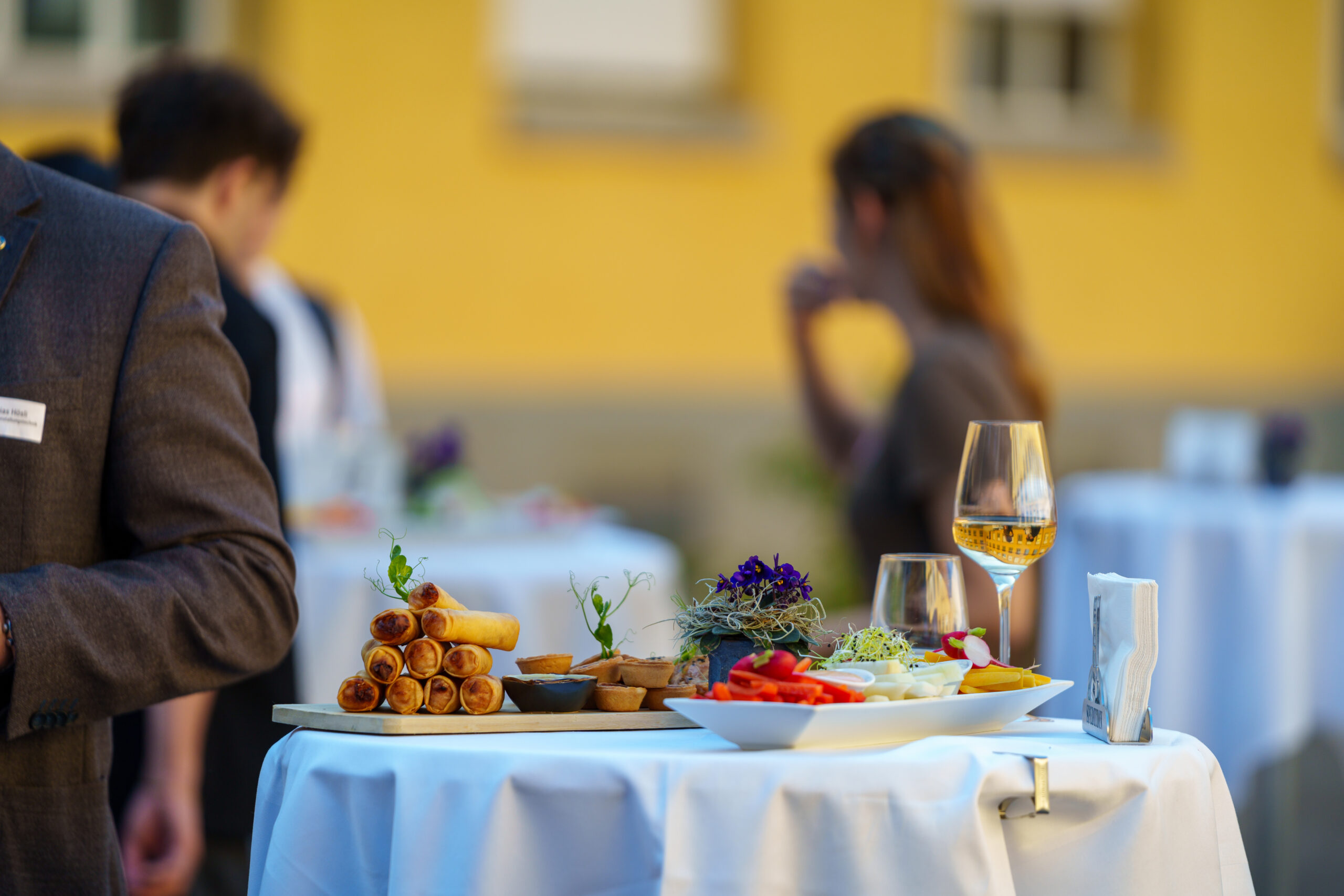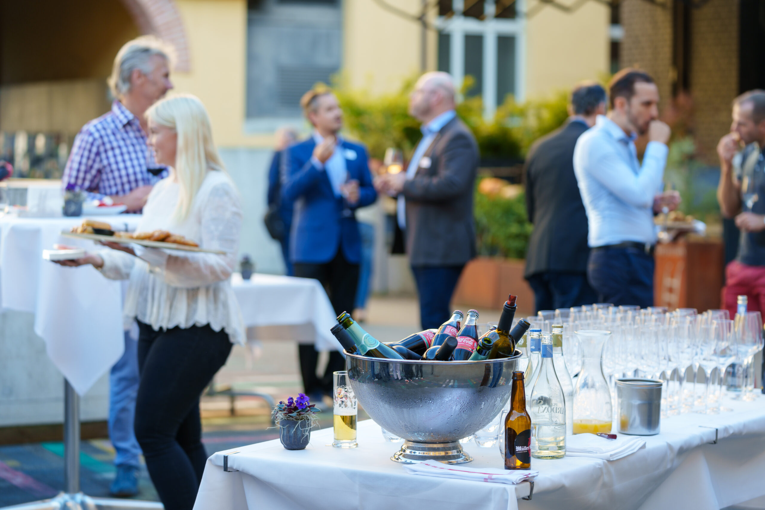 Ab 19:00 Uhr wurden wir von einem Flying Dinner mit erlesenen Köstlichkeiten verwöhnt. Die innovative Servierform ermöglichte es uns, uns frei zu bewegen und dabei verschiedene Gaumenfreuden zu geniessen.