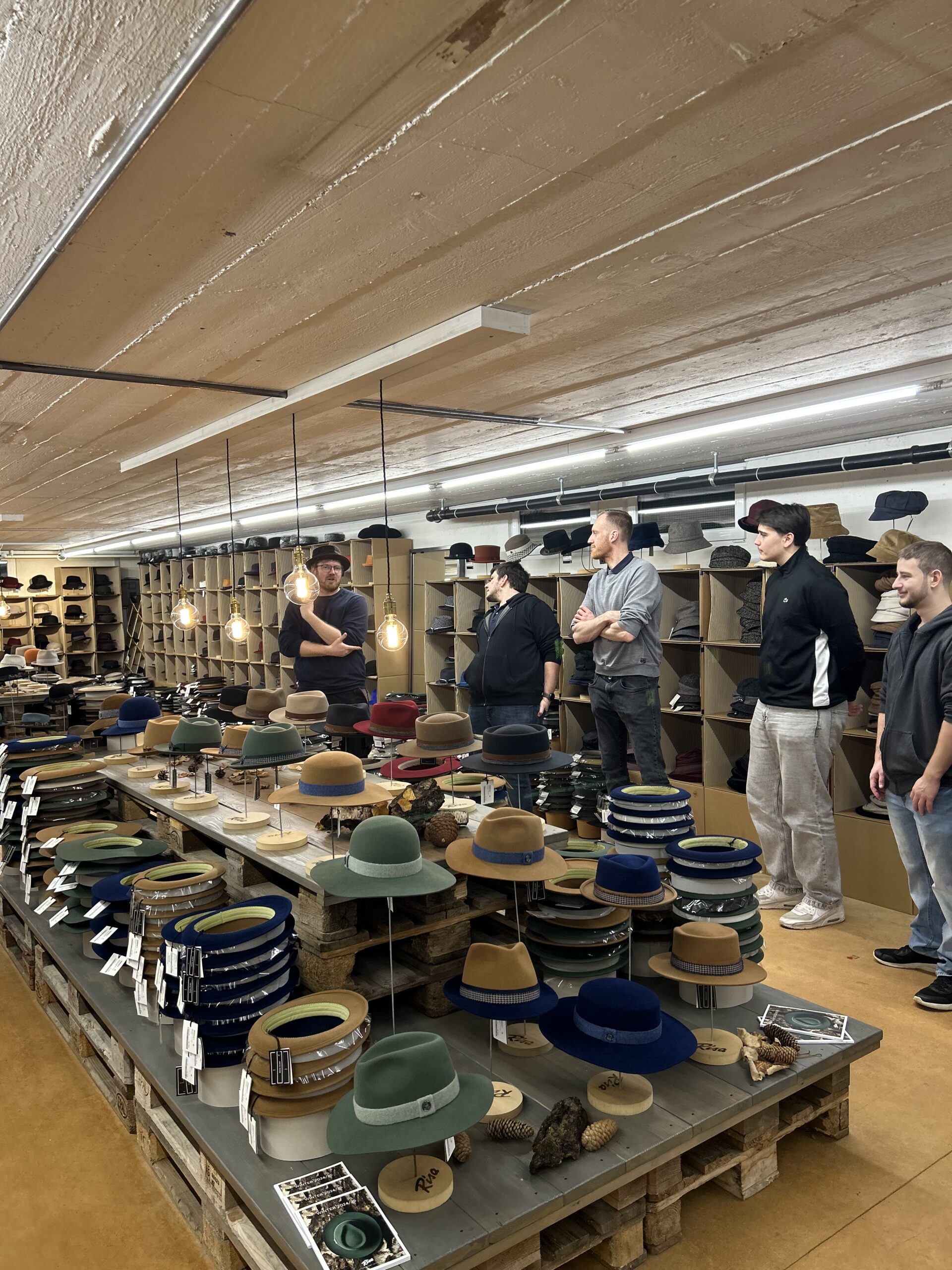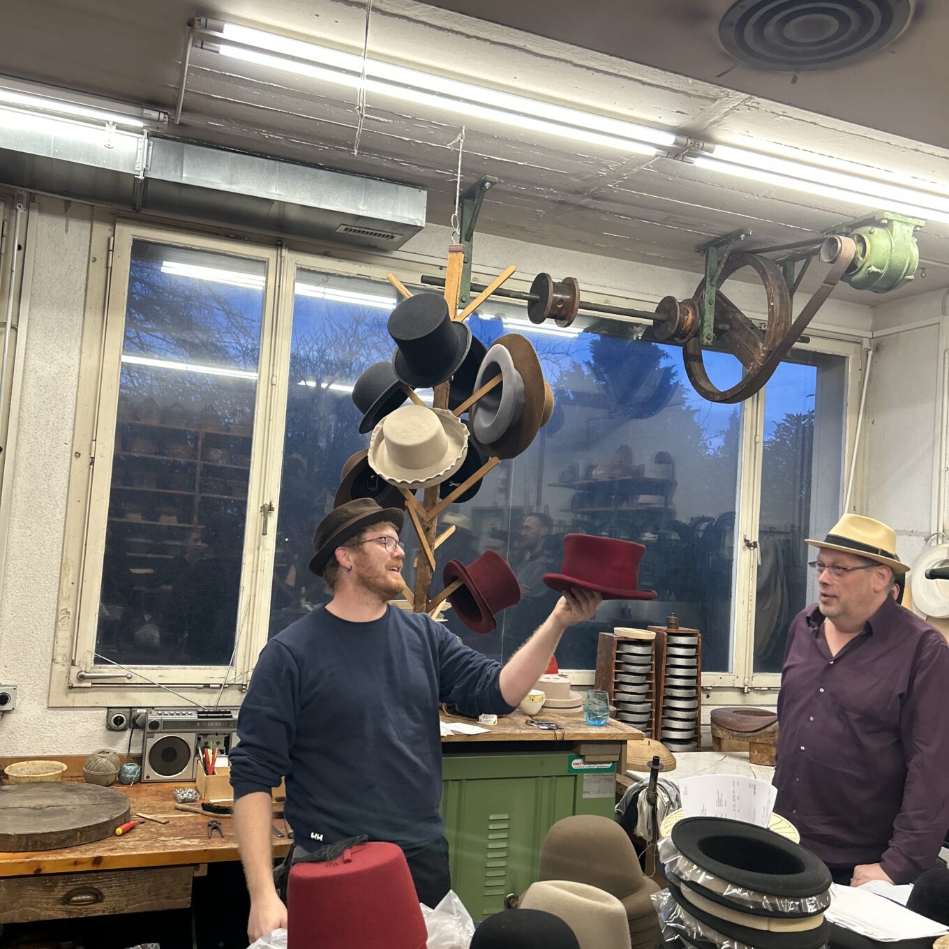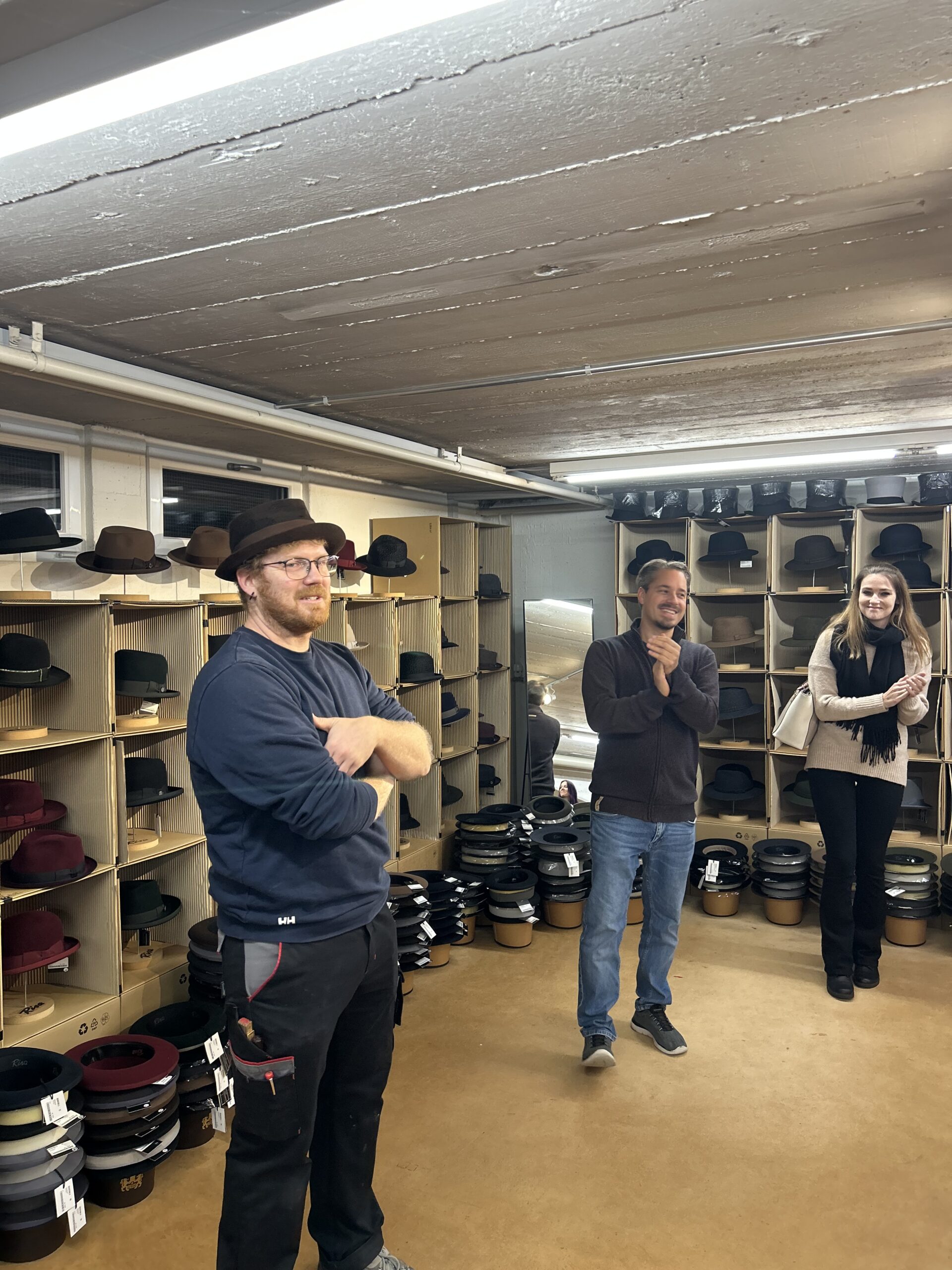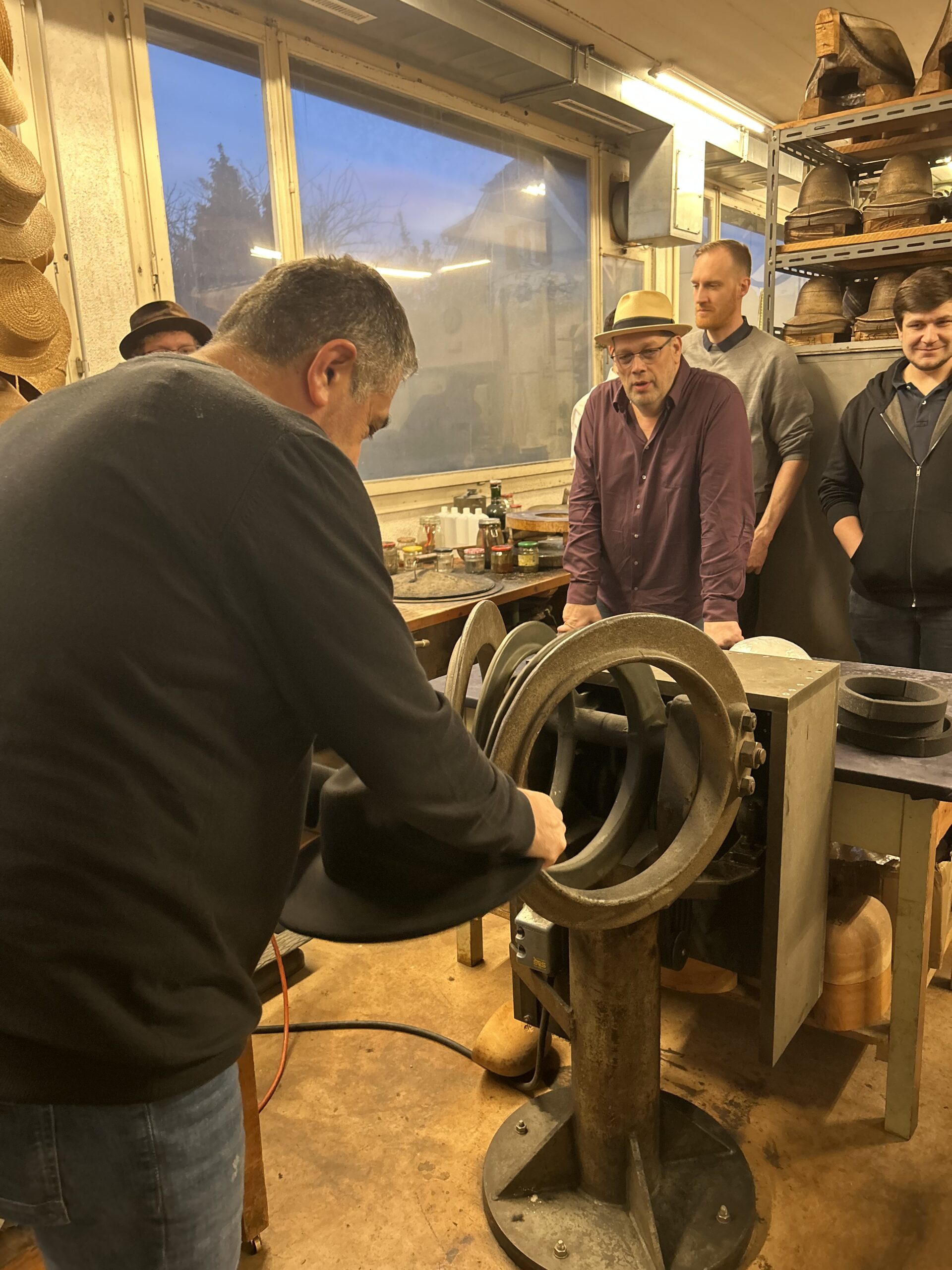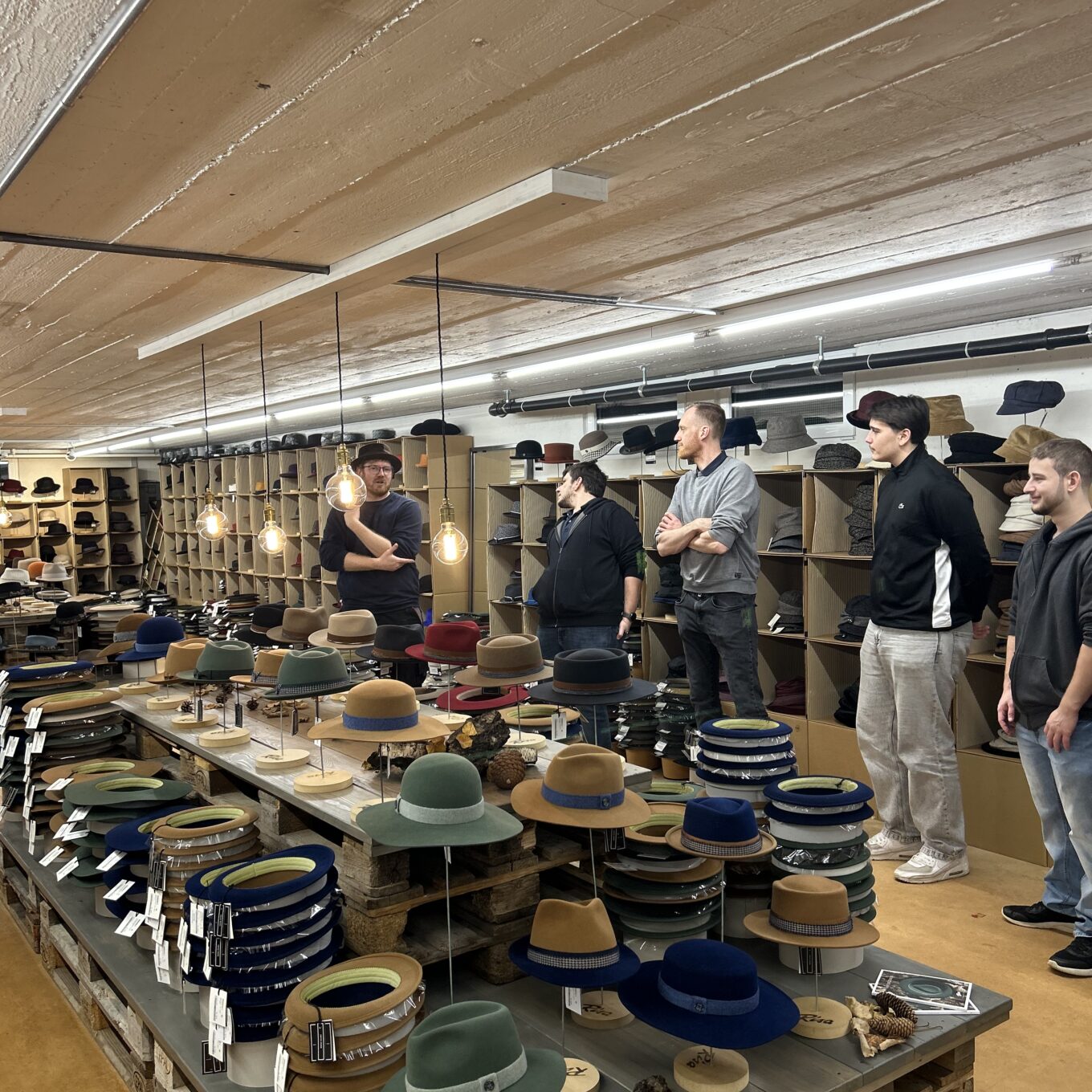 Julian Huber, der junge Geschäftsführer, führte uns persönlich durch die Manufaktur. Mit Begeisterung erklärte er uns die aufwändige Hutproduktion: Von der Formgebung mit Dampf und Hitze bis hin zur präzisen Handarbeit, die jeden Hut zu einem Unikat macht. Die über hundert Jahre alten Maschinen zeigten uns, wie traditionelles Handwerk und moderne Produktion miteinander verschmelzen können.