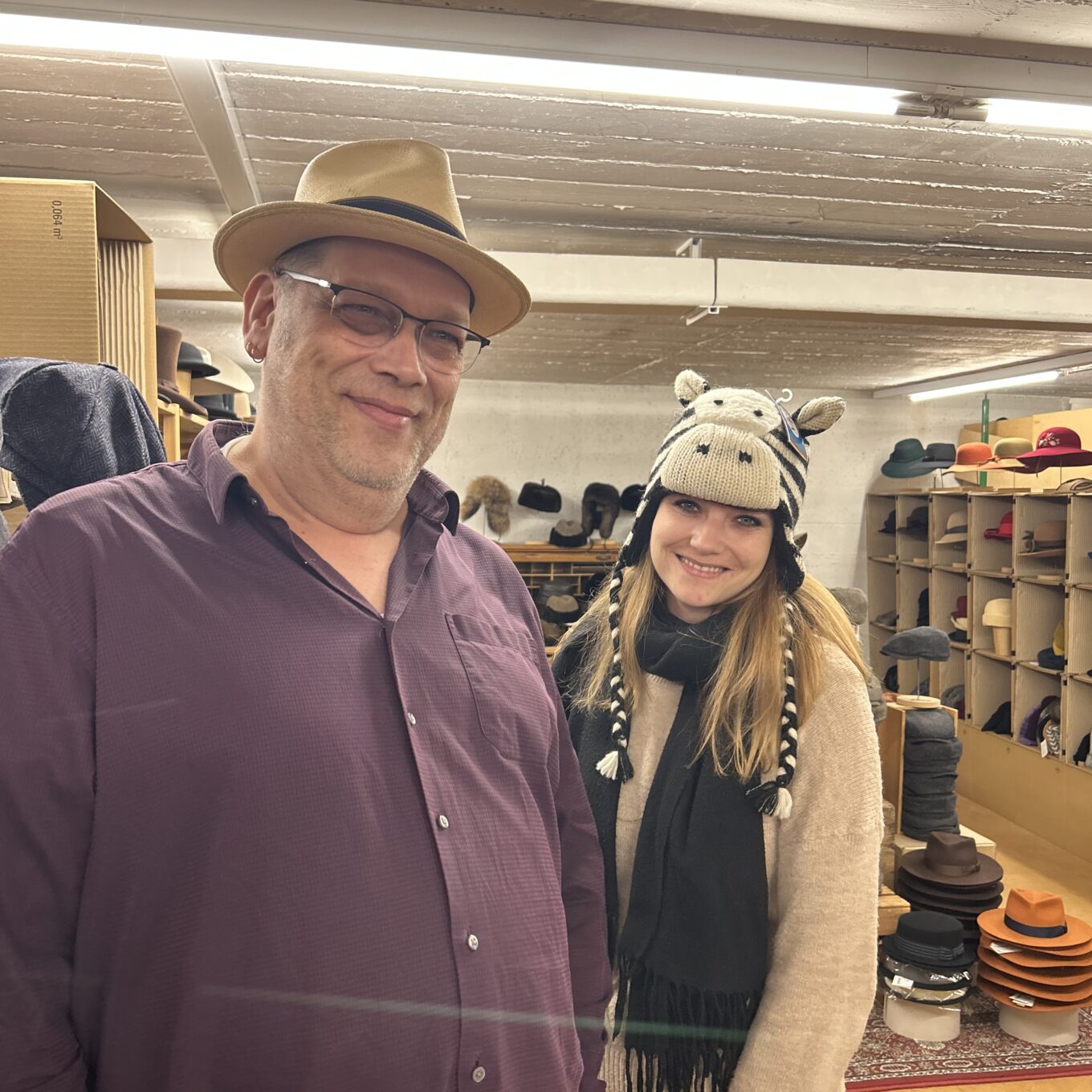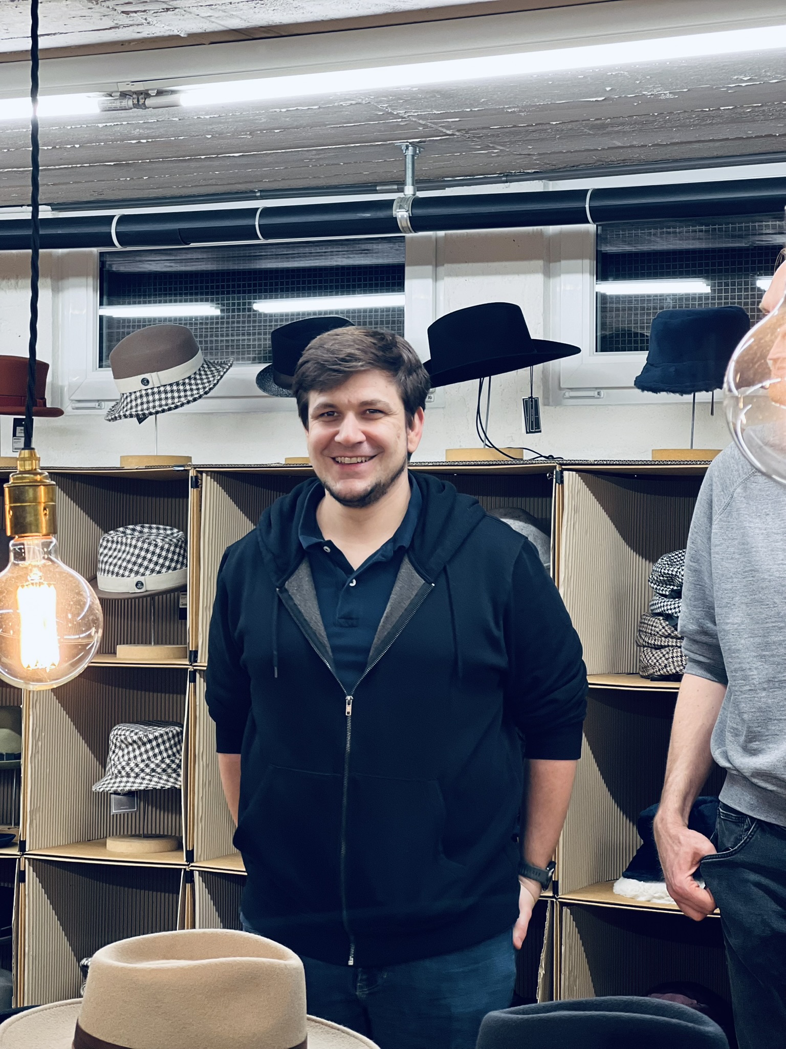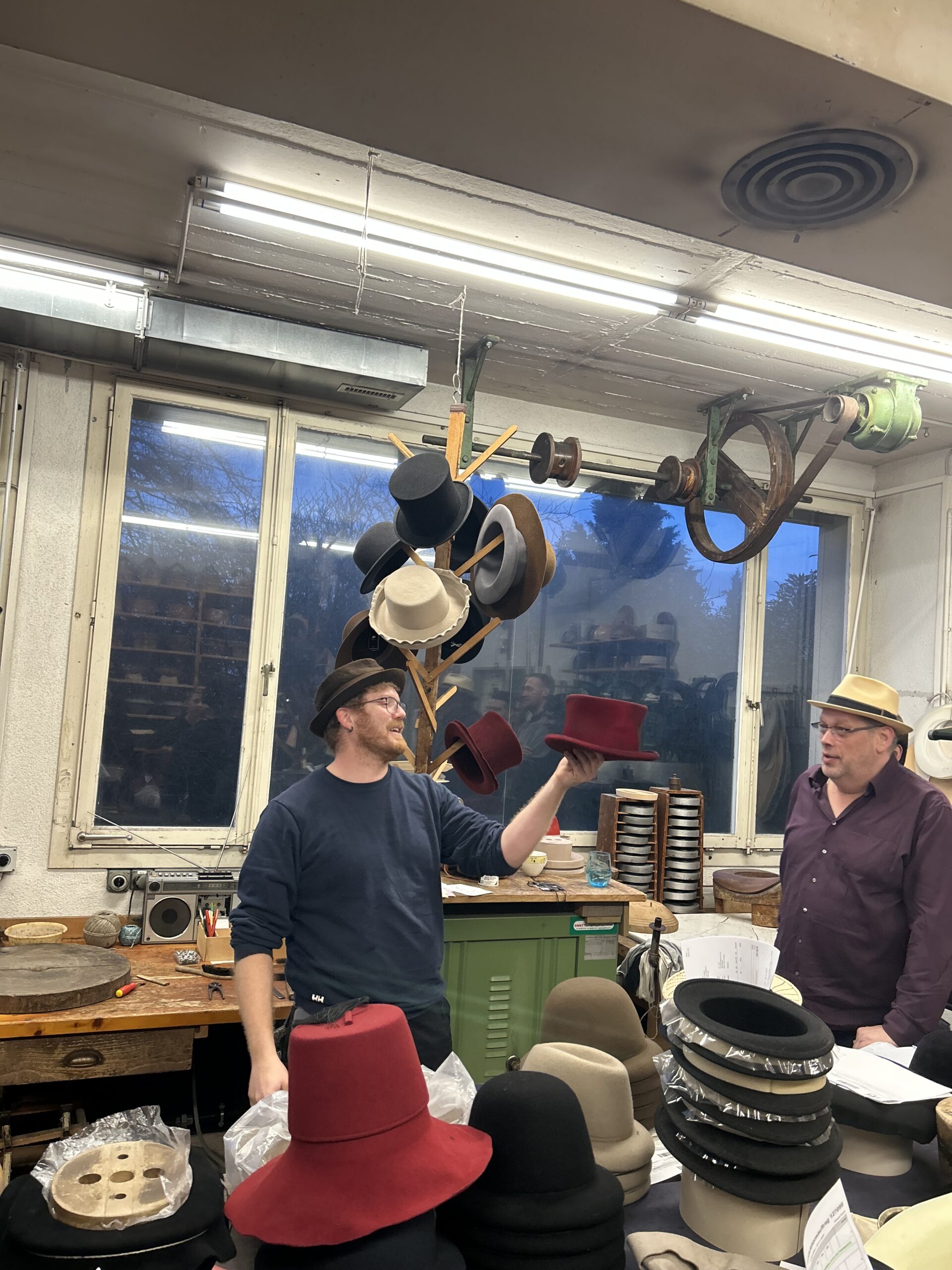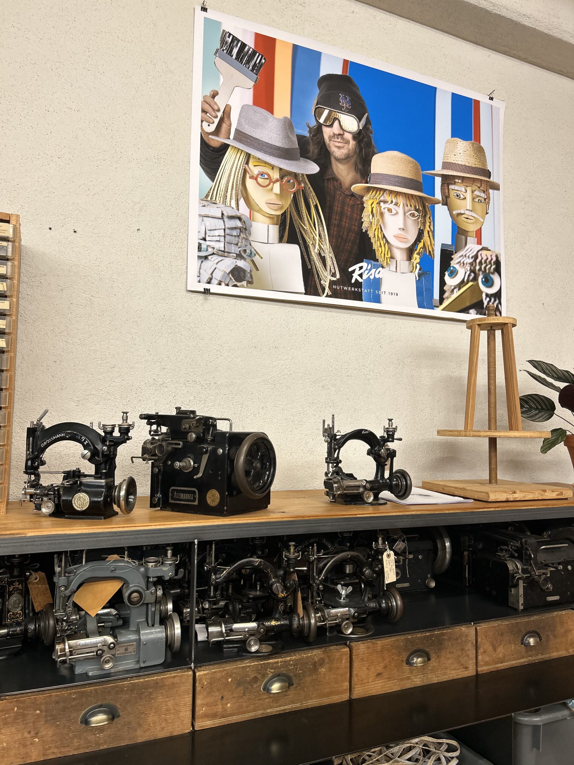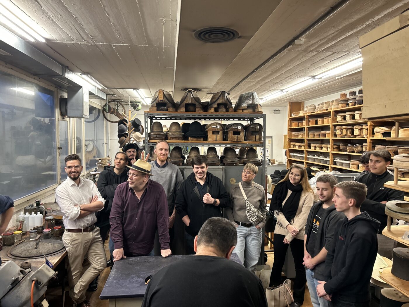 Julian Huber, der junge Geschäftsführer, führte uns persönlich durch die Manufaktur. Mit Begeisterung erklärte er uns die aufwändige Hutproduktion: Von der Formgebung mit Dampf und Hitze bis hin zur präzisen Handarbeit, die jeden Hut zu einem Unikat macht. Die über hundert Jahre alten Maschinen zeigten uns, wie traditionelles Handwerk und moderne Produktion miteinander verschmelzen können.