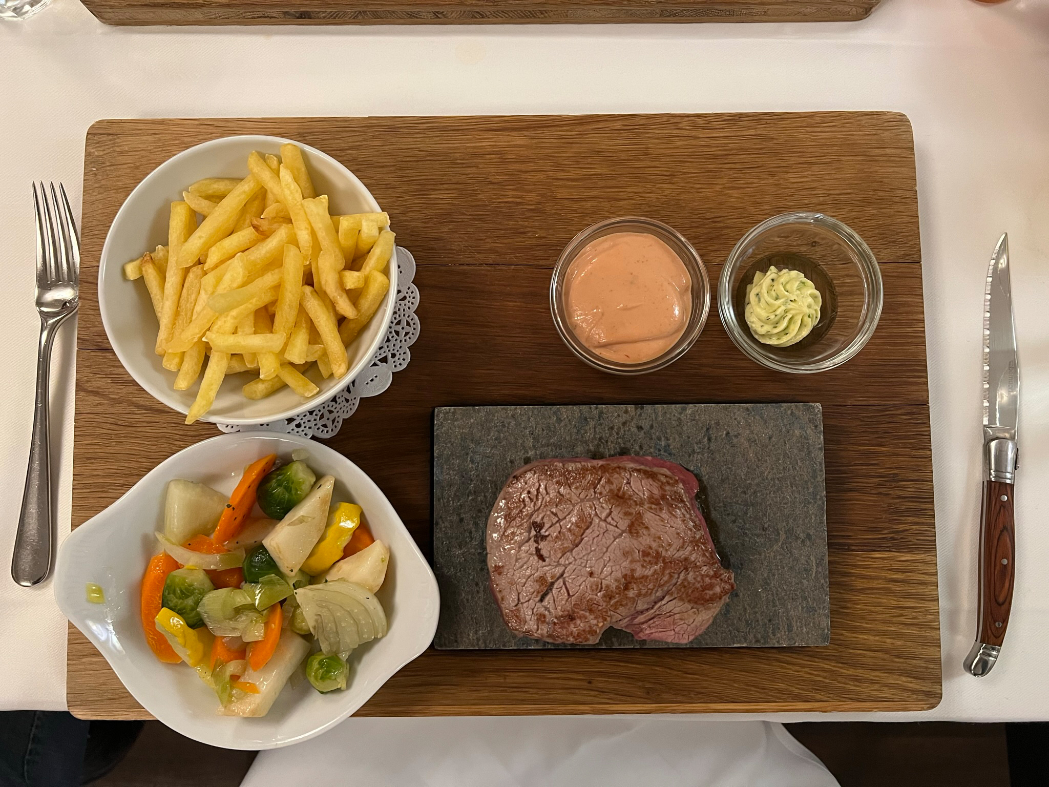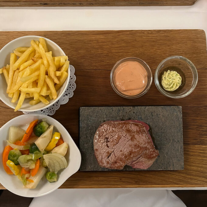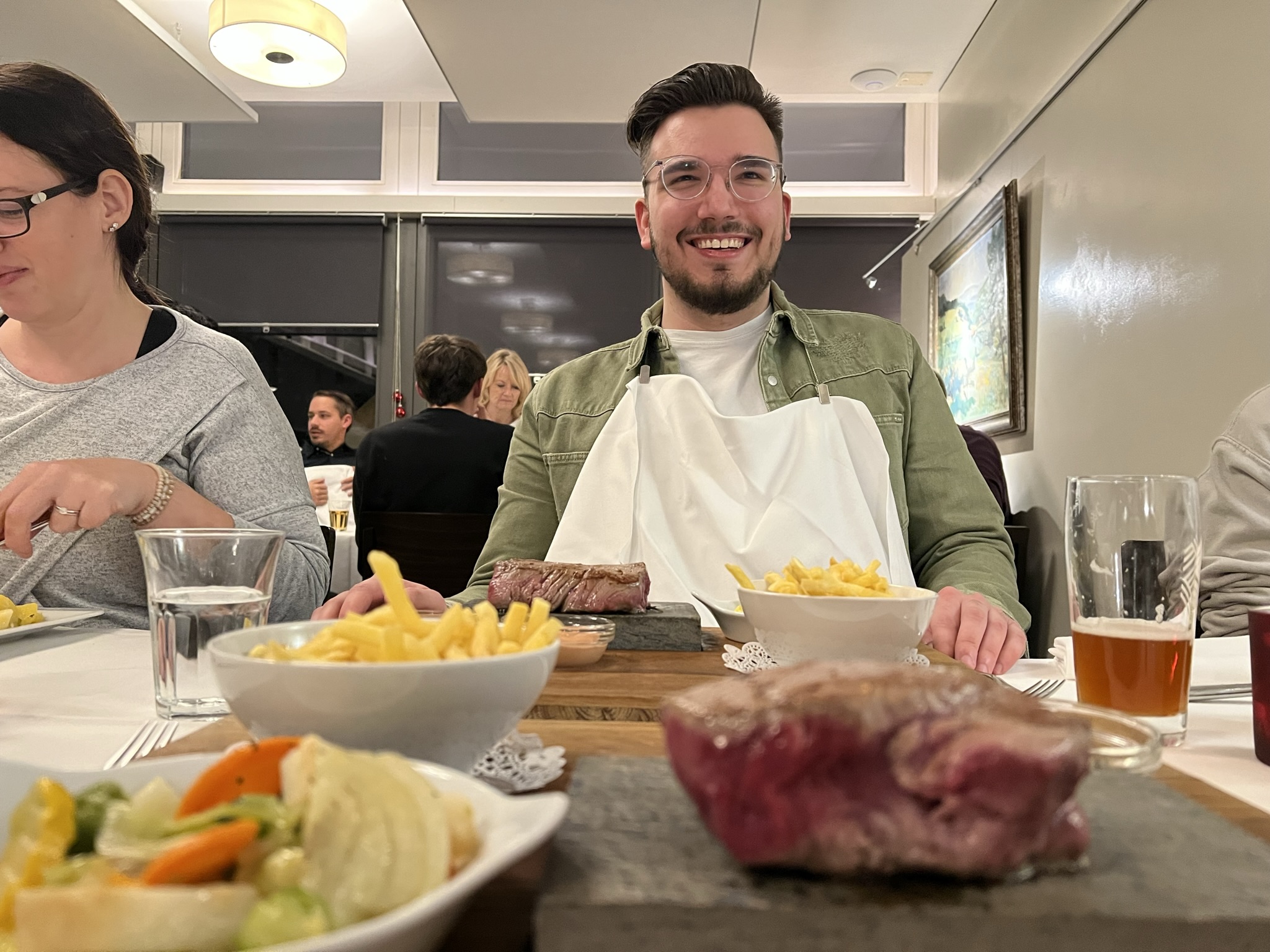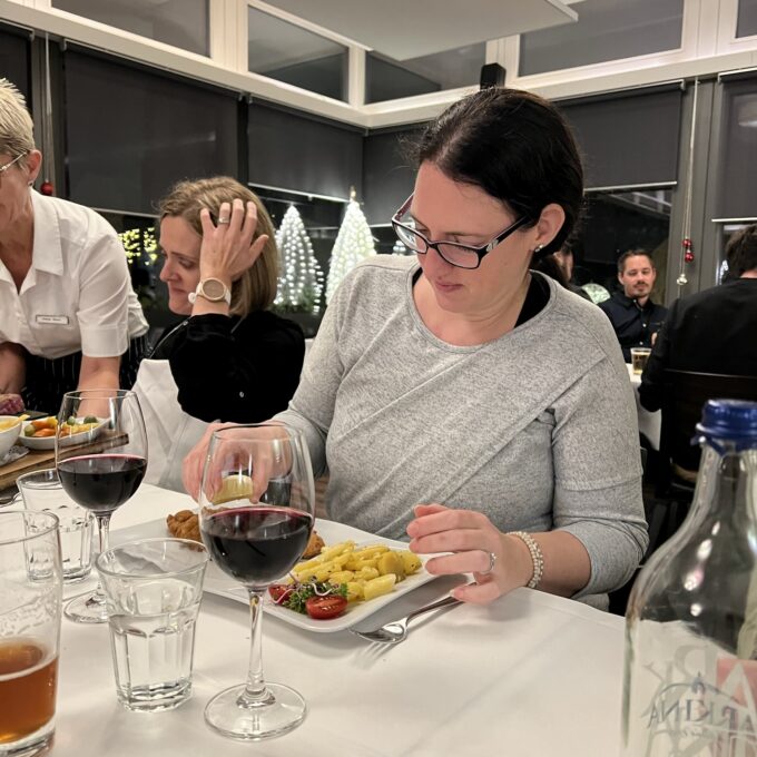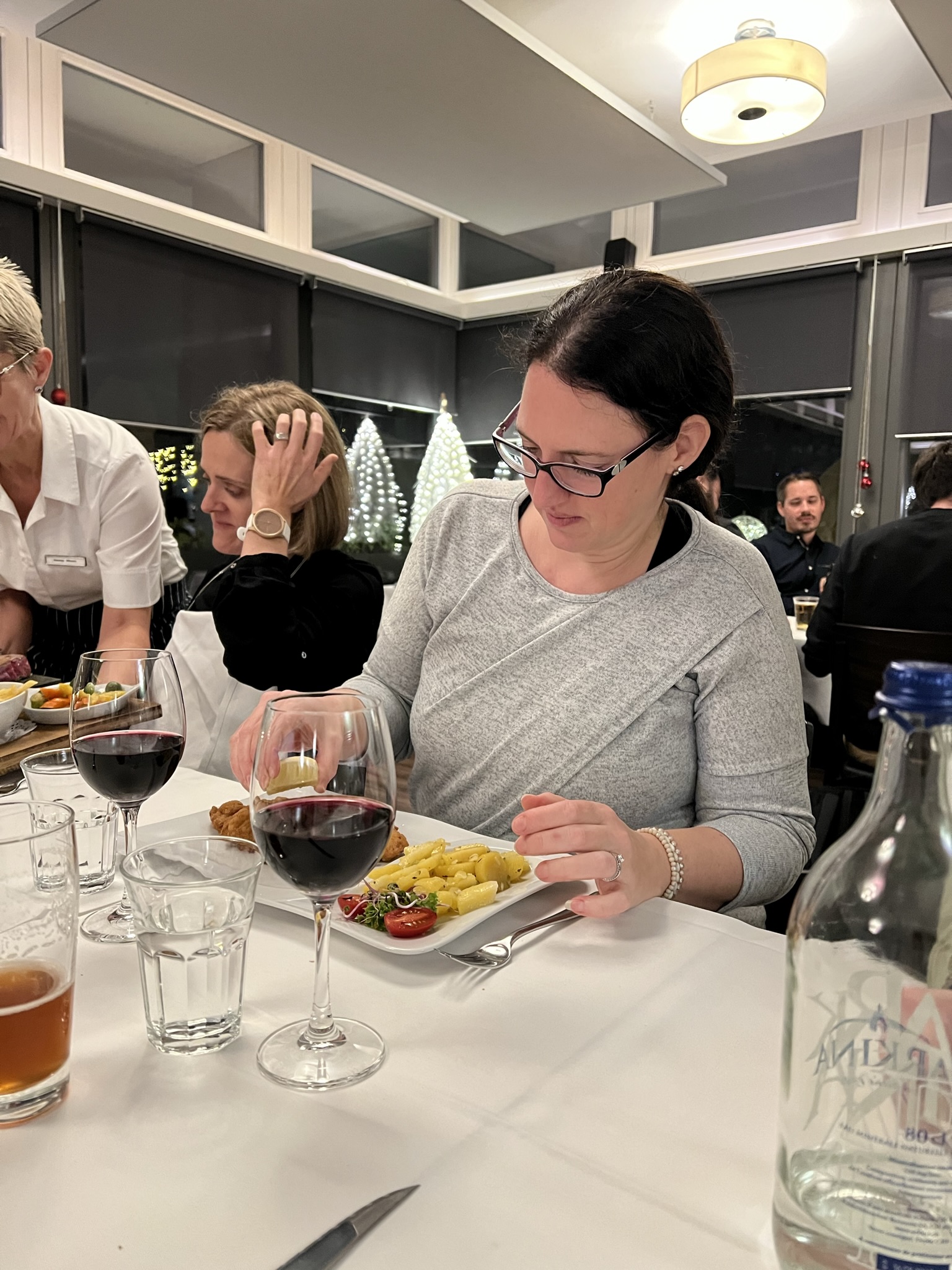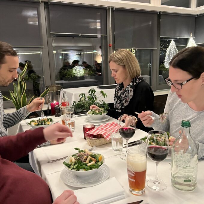 Nach der Museumstour der nostalgischen Art warteten auf uns leckere Speisen, zurück im Restaurant Rathausgarten. Es wurde ausgiebig diskutiert und geplaudert. Das Essen war richtig lecker – so wurde es auch während des Festschmauses ruhiger an den Tischen.