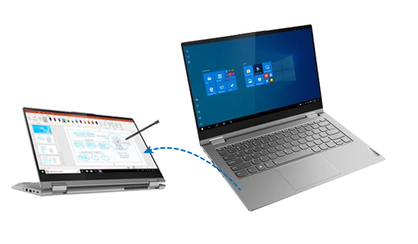 - Um 360° drehbares 14″-Touchdisplay und Unterstützung für aktiven Eingabestift (mitgeliefert)