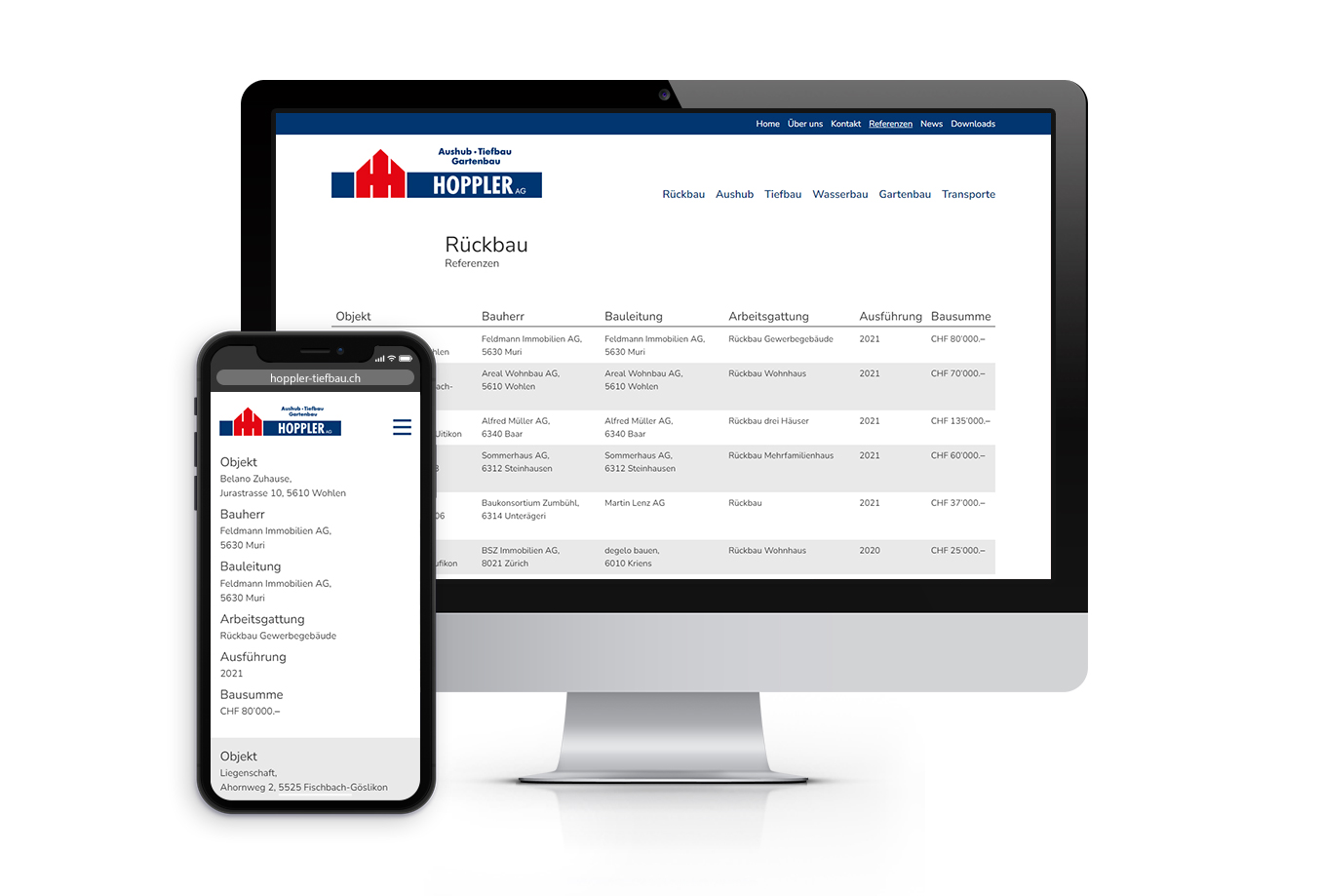 Die Firma Hoppler AG verfügt über zahlreiche Referenzen. Dem Kunden war es wichtig, dass diese auf einfache Art und Weise administriert werden können.