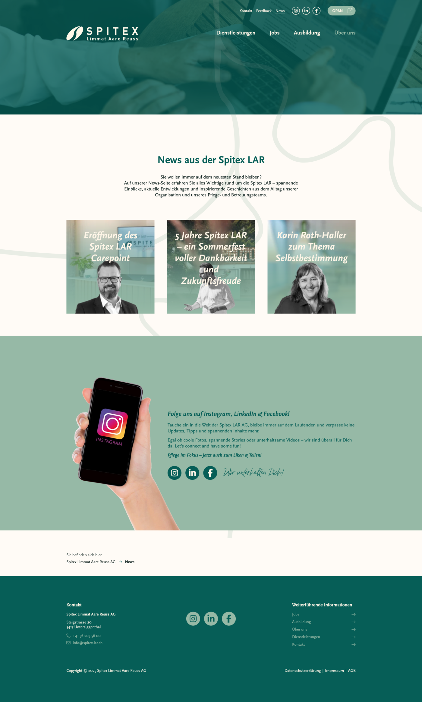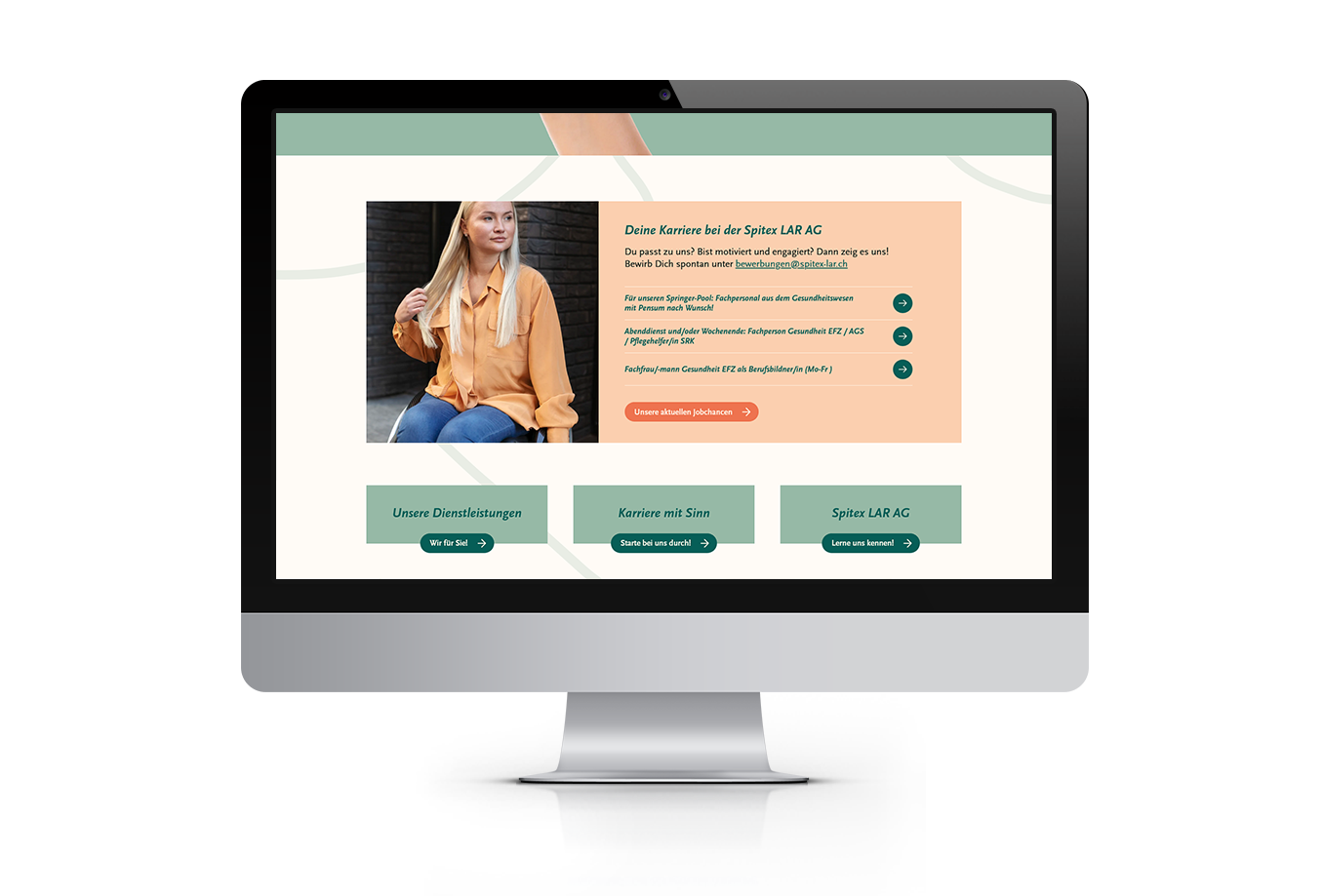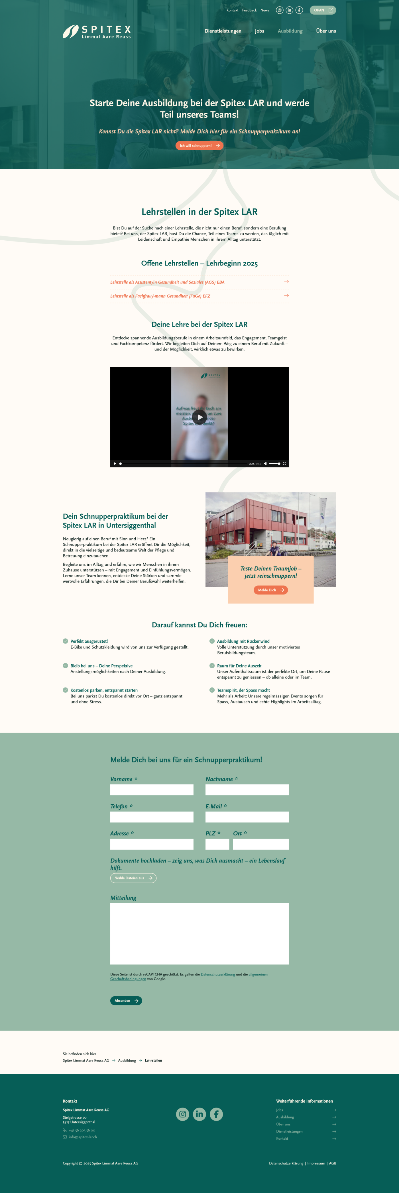 Spitex LAR legt grossen Wert auf gezieltes Employer Branding, um qualifizierte Fachkräfte für ihr engagiertes Team zu gewinnen. Die neue Website wurde so aufgebaut, dass sich der Bereich rund um Jobs und Ausbildung künftig flexibel erweitern und gezielt vermarkten lässt.