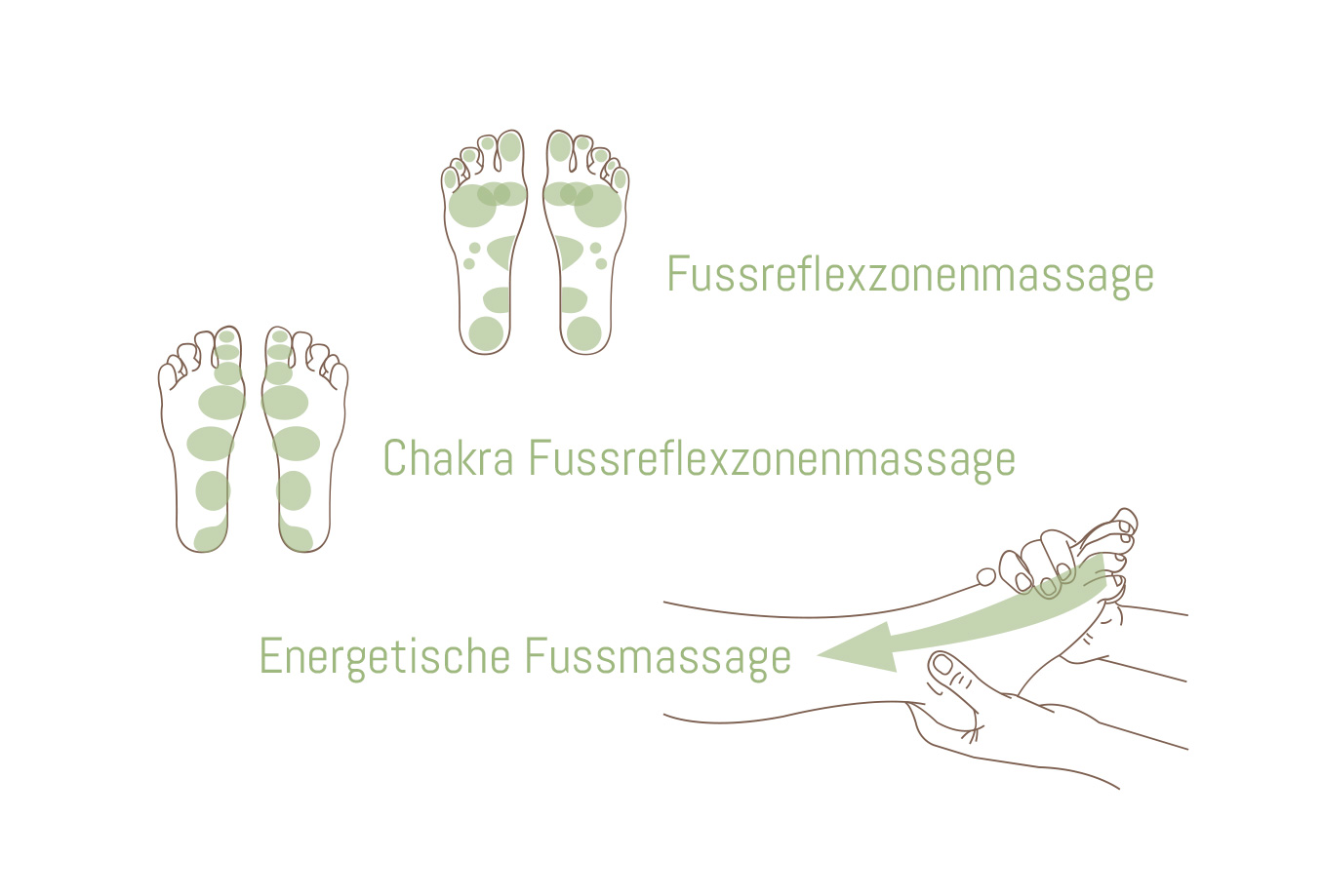Mit einfachen Illustrationen werden die Dienstleistungen von «FUSSinHAND» dargestellt.