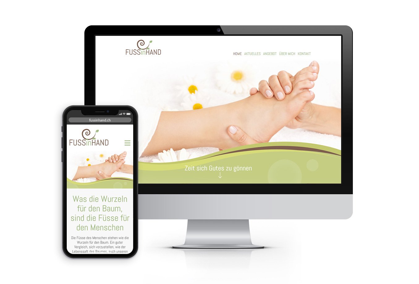 … zeigt sich auf der Website fussinhand.ch. Die Website erscheint in dezenten Naturfarben und wirkt dadurch leicht. Die Leichtigkeit, welche die Kunden von FUSSinHAND fühlen, wenn Sie nach einer Behandlung die Praxis verlassen.