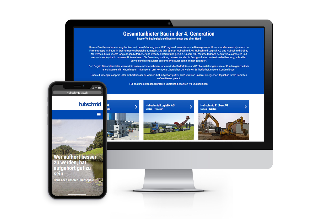 Das Familienunternehmen Hubschmid AG bedient seit dem Gründungsjahr 1930 regional verschiedenste Bausegmente. Die moderne und dynamische Firmengruppe ist heute in drei Kompetenzbereiche aufgeteilt.