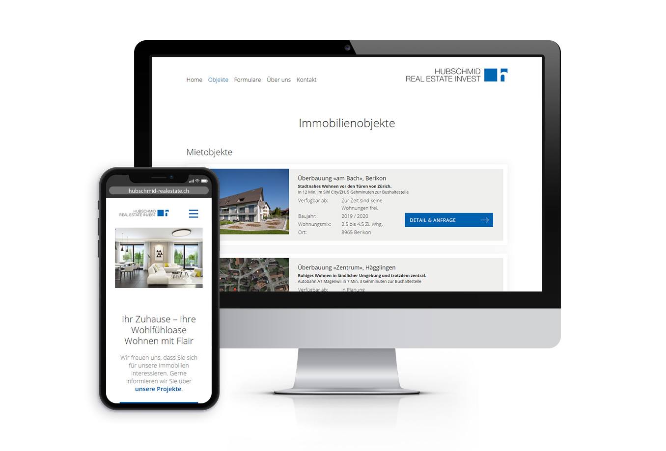 Hubschmid Real Estate Invest AG hat uns bereits vor der Firmengründung beauftragt eine Website zu erstellen auf welcher Miet- und Kaufobjekte publiziert werden können. Die Website wurde soweit vorbereitet und pünktlich zur Firmengründung aufgeschaltet.