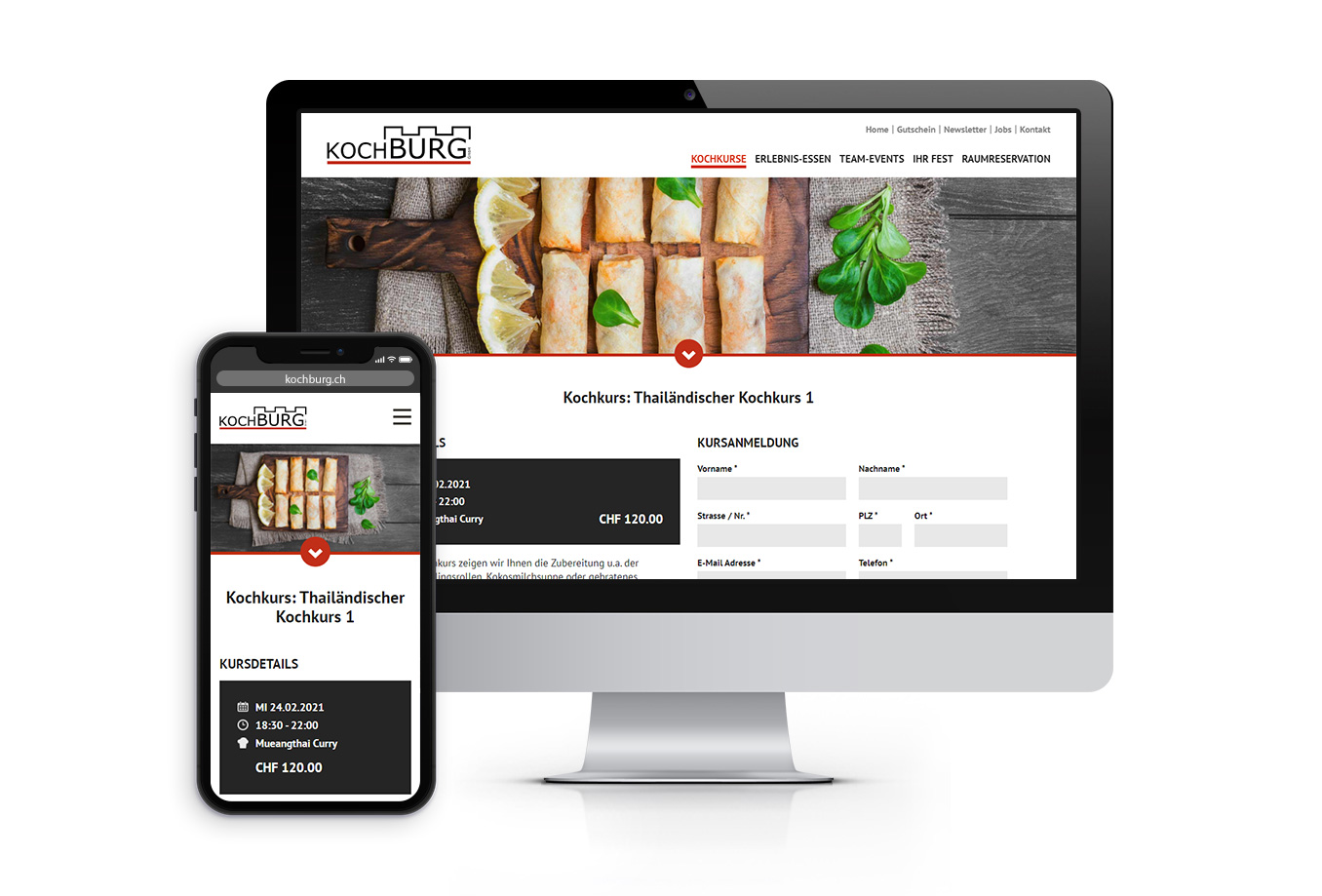 Für die Kochburg in Lenzburg haben wir Ende 2019 eine neue Website realisiert. Für den Kunden musste es möglich sein, selbständig neue Kochkurse zu erfassen und diese zu administrieren.