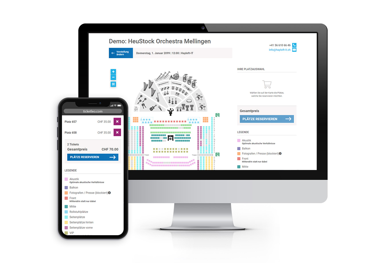 - Mit dem Ticketleo-Editor können individuelle Sitzplatz- oder Stehplatzpläne visualisiert werden.