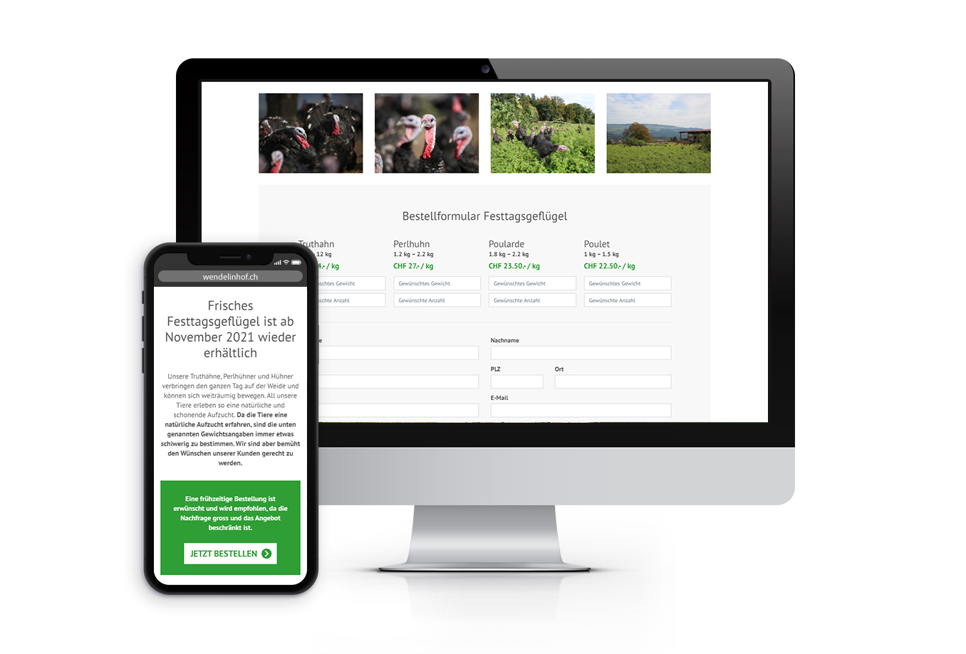 Über die Website des Wendelinhofs können die Kunden Bestellungen für Truthähne, Perlhühner, Poularden und Poulets machen.